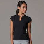 Cap sleeve V-neck top. Self-fabric binding around top back neck and cuffs. Self-fabric fused interfacing in V neck. Twin needled stitched hem. Gamegear® Woven label. Printed care label in side seam.