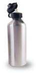 Aluminium water bottle. 600ml available in white or silver. Both mouthpiece and cap included.