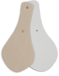 Available in tan or white leather, includes ring.