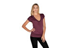 Hipsters love this slouchy-chic tee with shirring at front neck and a wide set-in neckband and extra wide banded bottom