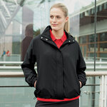 Full zip with covered placket. Funnel neck collar popper neck. Detachable hood. Zipped pockets. Shaped side seams. Mobile phone/MP3 chest pocket. Embroidery access.