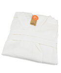 This quality waffle bathrobe is used in many top spas and hotels and is available in various sizes. It is spacious and has a hood. Made from premium quality waffle fabric in 100% cotton, the robe is moisture-absorbent. Solid quality, Kimono style and takes up less space when traveling. SEDEX certified. Oeko-Tex certified. BSCI certified. Fairtrade certified.