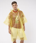 Emergency hooded plastic poncho for adults. Lightweight and reusable.