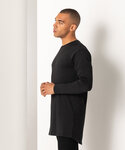 Tear-out label. Regular fit at chest and shoulders. Extra-long length, with longer dipped hem at back. Twin-needle stitching. Stretch rib neck with back-neck tape. Sedex certified. Vegan certified.