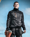 Tough work softshell made from water-resistant fabric for protection from light rain. Windproof and breathable softshell fabric. Reinforced shoulders and abrasion-resistant panels. Shaped sleeves for ease of movement, dipped-back hem for coverage, and zipped pockets for secure storage. Elasticated cuffs for comfortable fit. Certified Sedex.
