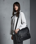 Quality full grain leather look PU. Fully lined in pinstriped fabric. Zippered rear plush lined media pocket. Gunmetal fittings. Zippered front pocket. Magnetic closures. Adjustable shoulder strap. Padded grab handle. Vintage style metal fittings. Reach certified.
