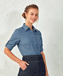Premier Women's poplin cross-dye roll sleeve shirt PR317