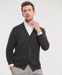 Classic Fit. Contemporary styling. V-cut long sleeved cardigan. Elastane on ribbed cuffs and waistband trim to retain shape and smart appearance. Refine button up fastening with inside facing and dyed-to-match buttons. Fully fashioned . Quick to dry and easycare.